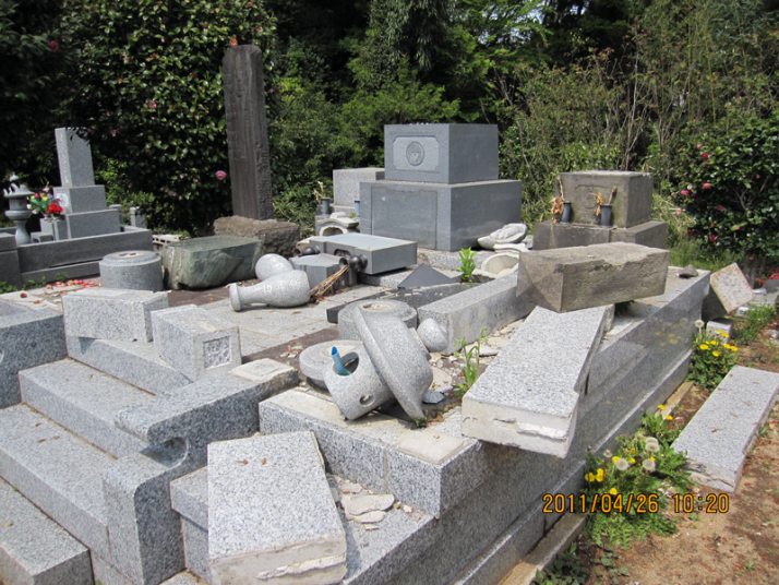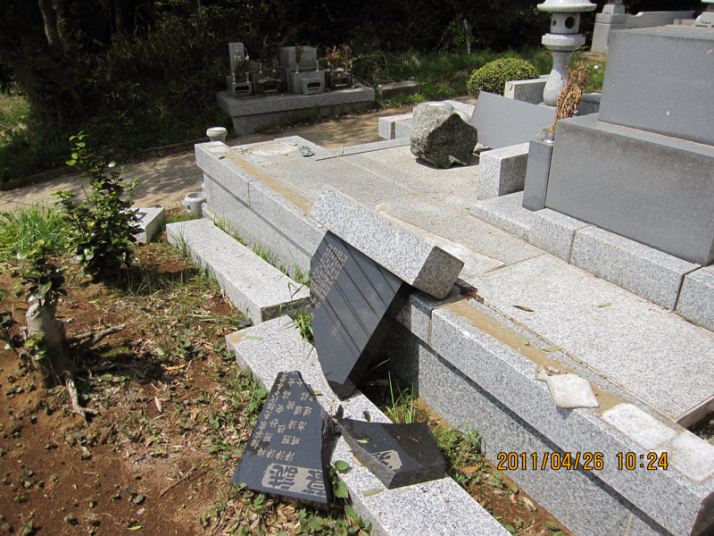 数ヶ月後に大きな余震がありそうな予測もありますが、今回の東日本大地震で墓石の倒壊などに合われた方は早めの修理をされた方がよろしいかと思います。